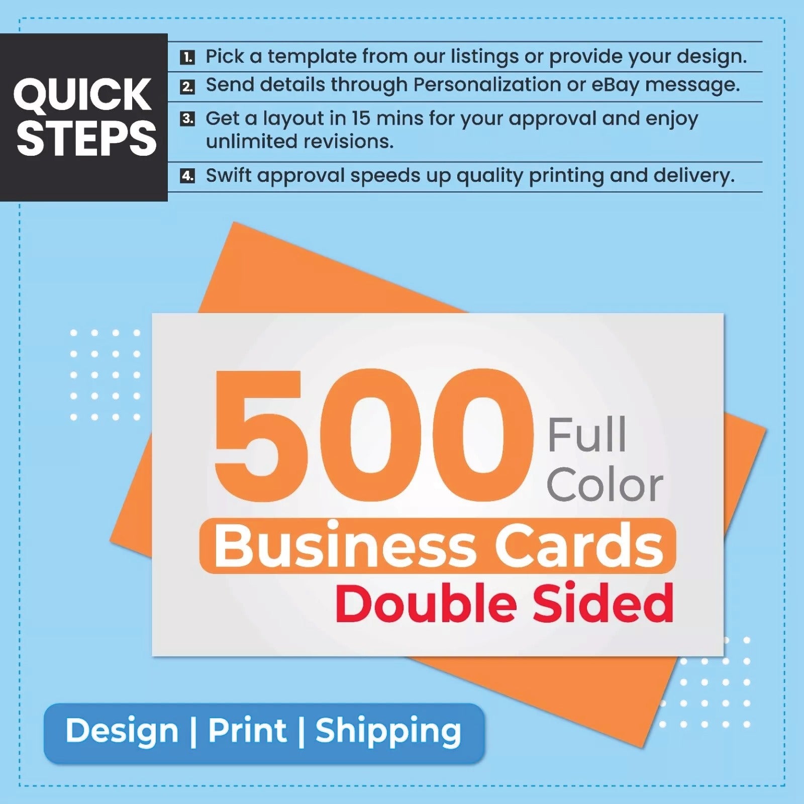 500 Custom Full Color Business Card Printing FREE Design, FREE Same Day Shipping
